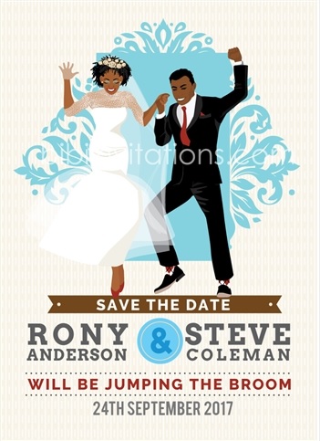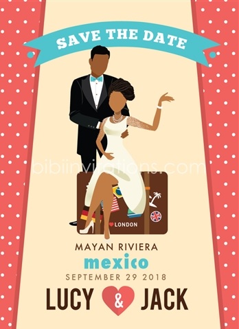 Bibi invitations just launched a newly minted line of printable African American save the date cards which can be customized to match any skin tone and hair texture from kinky, curly, coily, and wavy to locs and straight styles. And what’s best of all is the customization is available for both the bride and the groom so your man won’t feel left out.